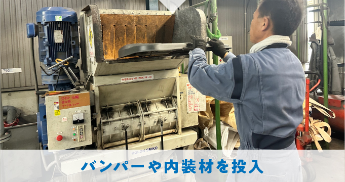 前処理後の車体は、専用のシュレッダーやクラッシャーに投入され下記の素材ごとに破砕・粉砕されます。