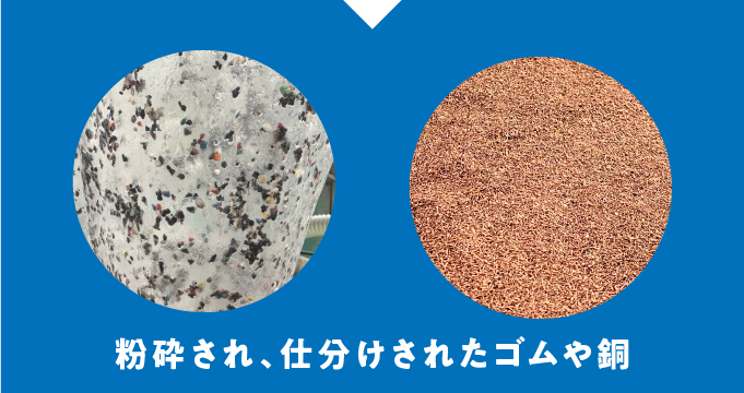これらの過程が、金属やプラスチック、ゴムなどの各素材が新たな原材料として再利用され、結果として98%に及ぶ高いリサイクル率の実現につながっています。