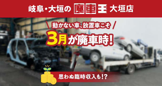 動かない車・放置車こそ3月が廃車時|岐阜・大垣の廃車王 大垣店